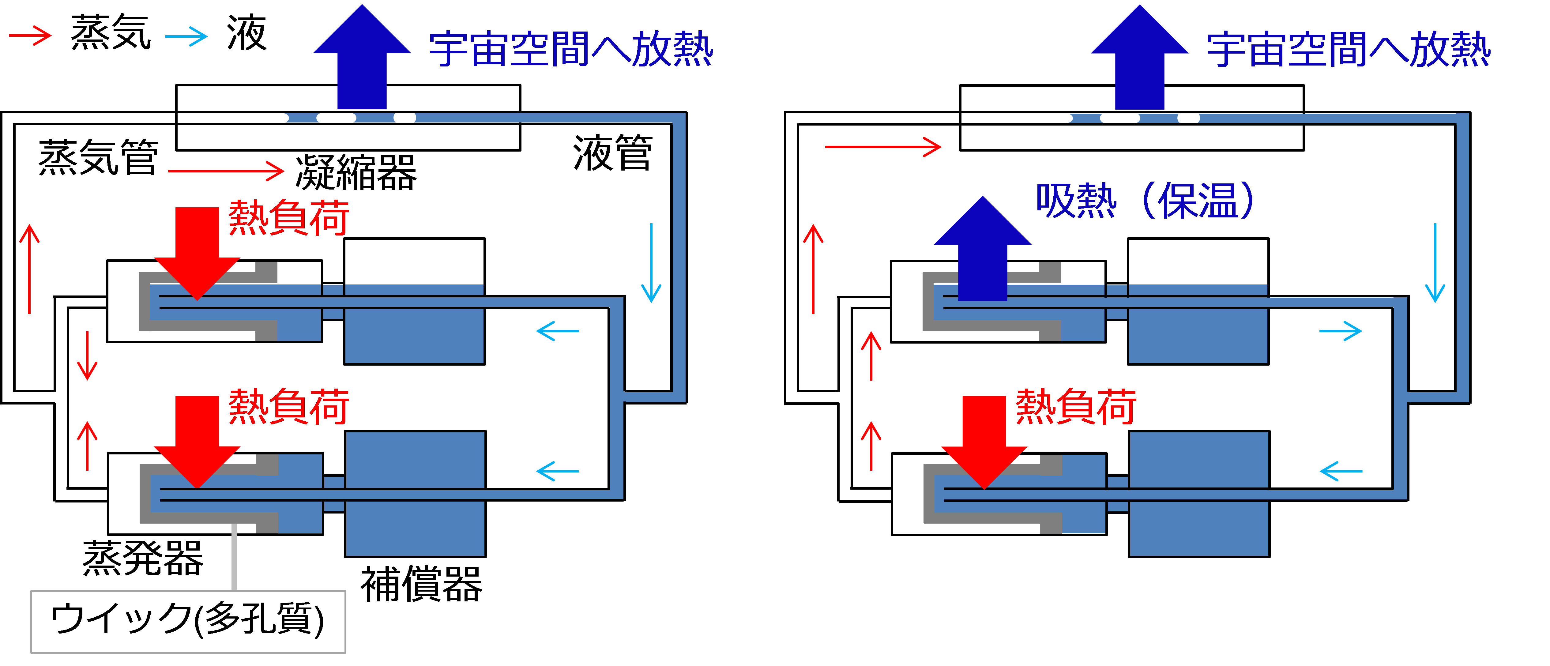 近年高度化する宇宙ミッションに対応する次世代の熱輸送デバイスとしてMultiple evaporators Loop Heat Pipe(以下MLHP)が注目されている.MLHPはLHPと同様に受熱部である蒸発器内に設置された多孔質の毛細管力と作動流体の相変化により駆動し,熱を輸送するデバイスである.更にMLHPは蒸発器の複数化によりLHPにはない以下の利点を得られるという特徴がある.