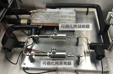 これにより高機能な熱制御デバイスが実現可能であるが,熱共有のようなMLHP特有の動作における内部流動特性が十分に把握されておらず宇宙実証には至っていない.またMLHPやLHPにおいて凝縮器は蒸発器と同様に重要な要素であるが,LHPの凝縮器内の流れは十分に検討されていない. そこで本研究は,蒸発器及び凝縮器の可視化により内部流動特性の解明を行い,詳細モデルを確立する事を目的としている.